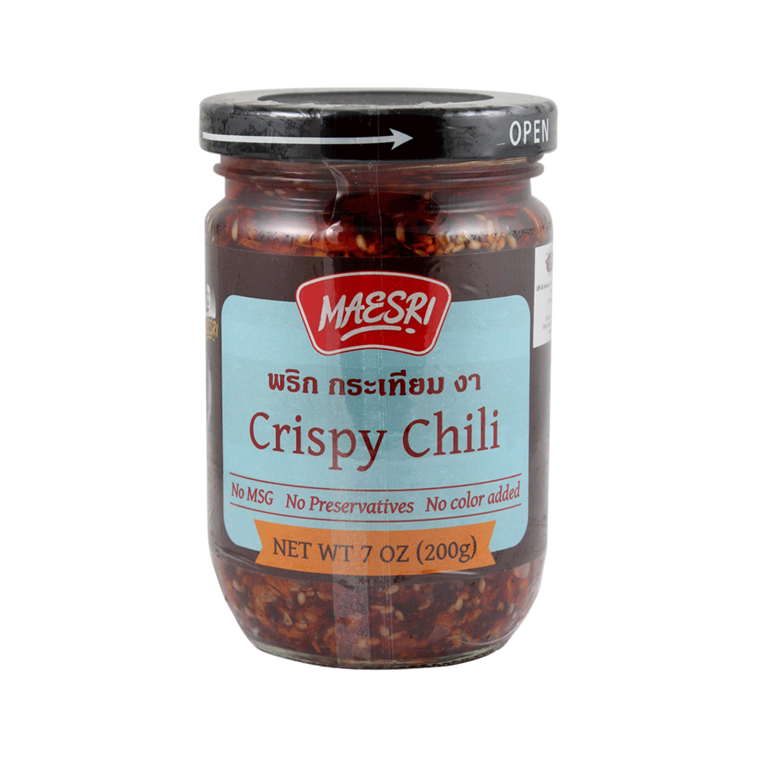 Soybeans (Soya) Oil, Dried Chilli (12%), Sesame Oil, Sesame Seeds (8%), Sugar, Garlic (6%), Salt, Onion, Light Soy-sauce (Soybeans) (Soya), Wheat Flour (Gluten), Salt, Sugar)), Ginger (1%). .